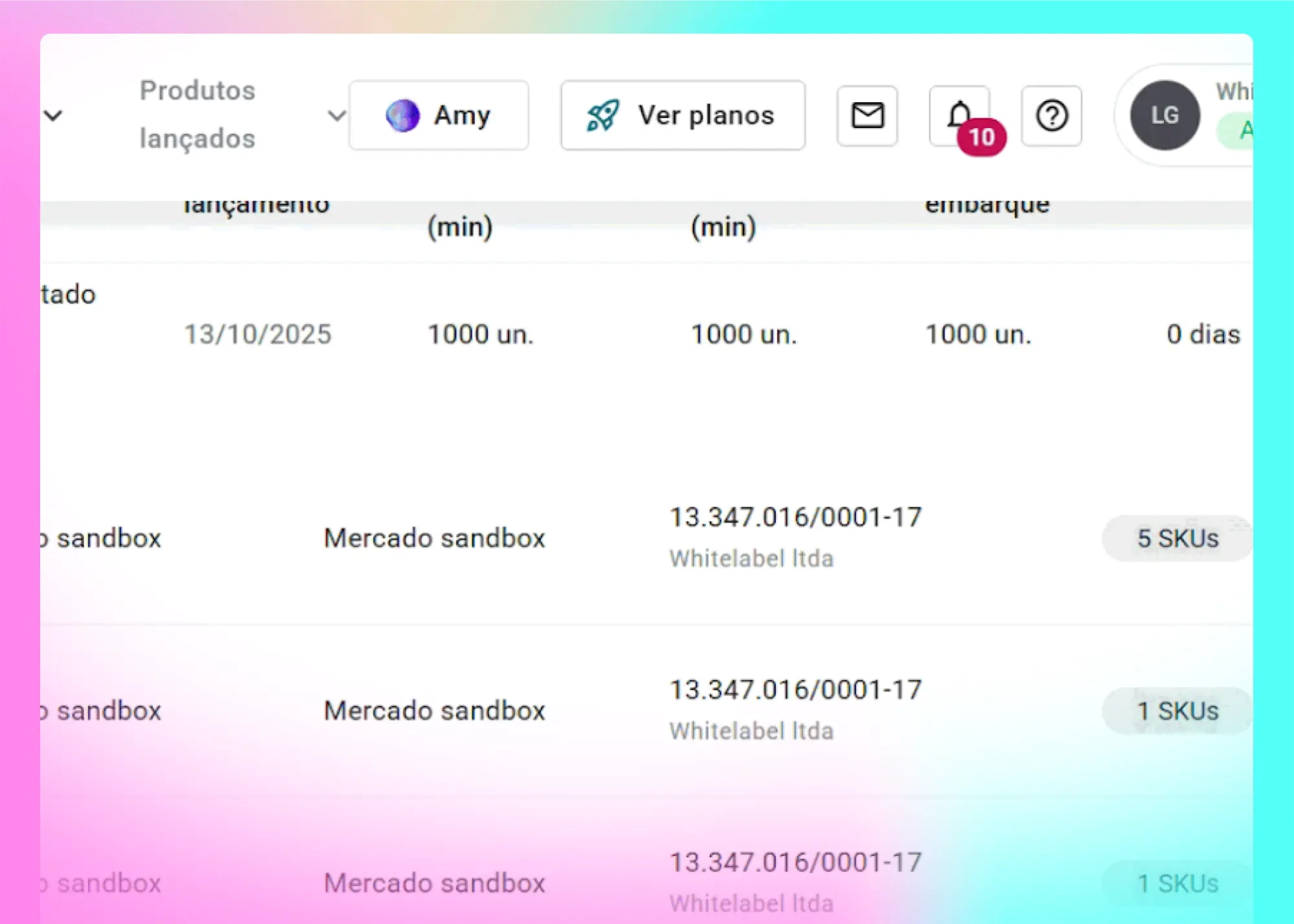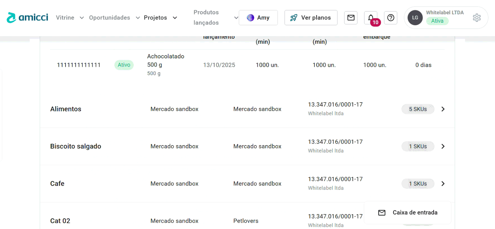 Agora, a página Meus SKUs exibe o CNPJ de fabricação de cada produto cadastrado.
