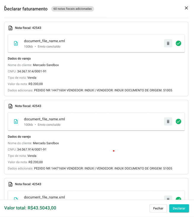 Lançamos uma série de melhorias para tornar o processo de faturamento mais completo, ágil e transparente para quem envia e para quem acompanha as NFs na plataforma.