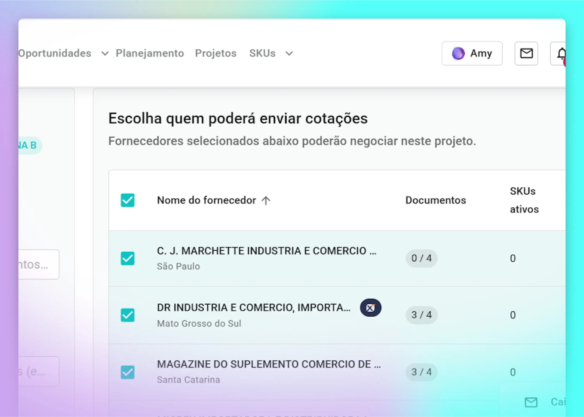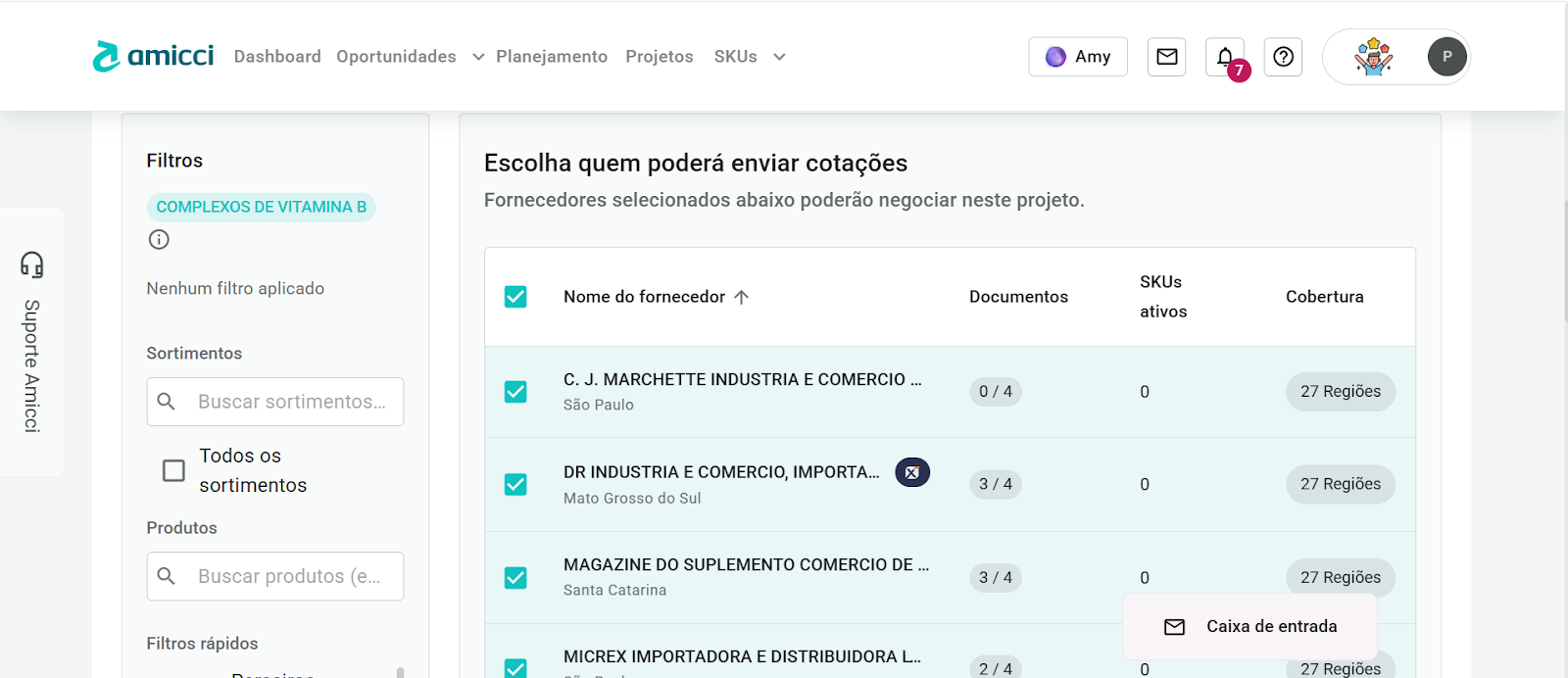Quando um projeto possui SKUs com N4 diferentes, o filtro considera indústrias compatíveis com todos os produtos cadastrados. Caso alguma indústria esperada não apareça, é importante verificar se ela possui o produto cadastrado em sua vitrine — apenas produtos registrados são considerados no match.